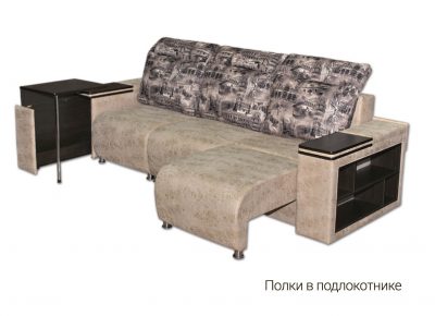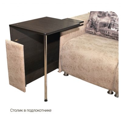 Благодаря оптимальному сочетанию конструкции дивана с наполнителем, диван обладает эргономичностью и высоким уровнем комфортности. Важную роль в эргономике посадки играет конструкция подушек с валиком, который поддерживает поясницу и способствует ее расслаблению. В одном из подлокотников вы получаете мини-стеллаж, где можно разместить мелочи, которые хочется иметь под рукой во время отдыха. Другой подлокотник дополнен выкатным столиком.